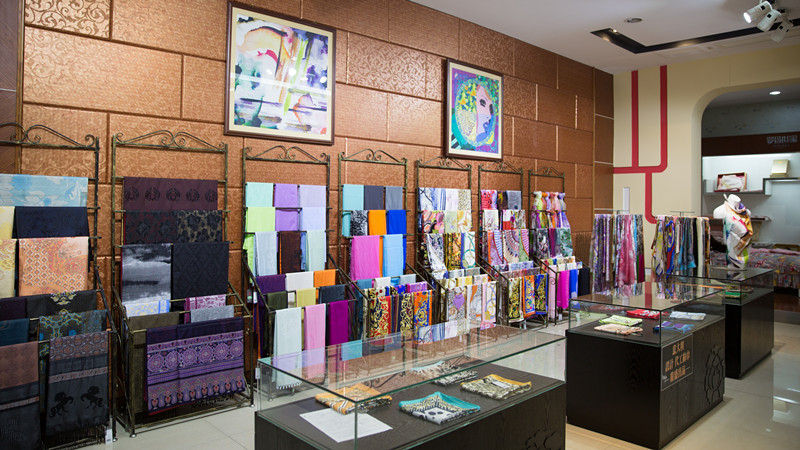 抵达盛泽后,苏豪传媒单凤艳副总经理带队参展商参观非遗宋锦馆,零距离触摸APEC领袖风采,分享国礼之尊。随后参观了先蚕祠、华佳丝博园,了解绸都丝韵水乡,感受中国纺织名镇,流行面料发布基地对丝绸的膜拜。